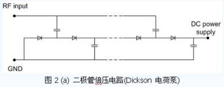 電源恢復(fù)電路將RFID 標(biāo)簽天線所接收到的超高頻信號(hào)通過整流、升壓等方式轉(zhuǎn)換為直流電壓,為芯片工作提供能量。電源恢復(fù)電路具有多種可行的電路結(jié)構(gòu)。如圖2 所示是目前常用的幾種電源恢復(fù)電路。