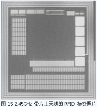 本文所介紹的一些RFID 標(biāo)簽的主要電路,大部分已經(jīng)經(jīng)過了流片的驗(yàn)證。圖14 是我們所設(shè)計(jì)的一款RFID 標(biāo)簽芯片。芯片面積0.7mm×1.0mm,在36dBm EIRP 下,可在6 米處讀出標(biāo)簽卡號(hào)。圖15 是2.45GHz 帶有片上天線設(shè)計(jì)的RFID 標(biāo)簽。在42dBm EIRP 下,該芯片可在40cm處產(chǎn)生響應(yīng)。