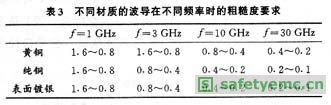 波導(dǎo)表面粗糙度越低,加工難度越大,制造成本也越高。為了降低成本、提高經(jīng)濟效益,在不同頻段,控制波導(dǎo)管表面粗糙度的要求是不同的。頻率越高,波長越小,粗糙度值要求也越低。表3為實際工作中總結(jié)出的銅、黃銅、鍍銀波導(dǎo)在不同頻率時的粗糙度要求,可作為設(shè)計時的依據(jù)。