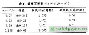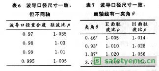 以23mm×10mm的波導(dǎo)為例,在f=10GHz時不同類型的安裝誤差所引起的駐波比見表4-表7。