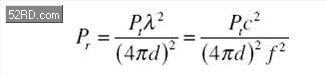 此方程式中假設兩支天線有一致的增益,它可顯示出,對于一固定的發射功率Pt而言,接收到的功率會隨著距離d的平方,以及頻率f的平方而降低(或是隨著波長λ的平方而增加)。當接收的功率低于能正確解調變信號所須的最小功率(即所謂的靈敏度點:sensitivitypoint)時,連結便會崩潰。