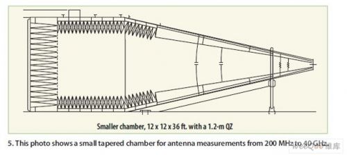 圖5:一個用于天線測試的200MHz至40GHz小型錐形暗室。