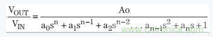 巴特沃茲濾波器傳輸函數包括所有極點,并且沒有零,其表達式如下: