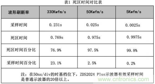 所以:捕獲時間=采樣時間+死區時間,而捕獲時間又等于波形刷新率的倒數。