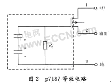 常見的熱釋電傳感器有p2613,p3782,p7187等。根據法拉第法則,人體的體溫約為3 7℃,輻射最多紅外線的波長是10μm左右,而p7187對7~20μm范圍波長比較靈敏,他采用了2個熱釋電元件PZT板,PZT板表面吸收紅外線,并在受光面的內外各自安裝取出電荷的一對電極,能敏感的捕捉到被測物體或光源,具有很高的靈敏度。這2個受光電極反向串聯,可有效地防止背景波動以及干擾光照射時的誤動作(一是環境變化引起的誤動作,二是使用光調制器時的誤動作)對傳感器的影響,當2個受光電極同時受到紅外線照射時,輸出電壓相互抵消而無輸出,只有當人體移動時才有電壓的輸出,輸出電壓比較精確的反映了人體移動的情況。P7187等效電路如圖2[2]。