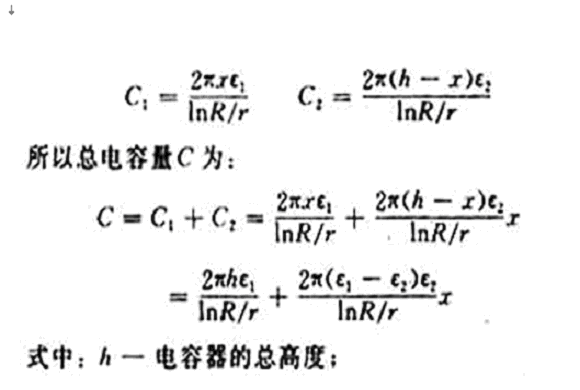 當容器的尺寸和被測介質確定后,則h,R,r,ε1和ε2均為常數,令: