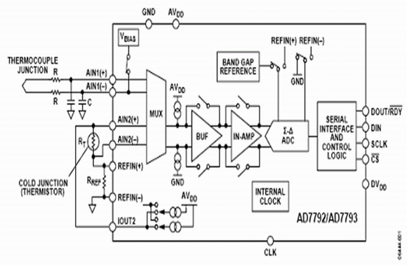 溫度測量系統通常是低速(每秒采樣最多100個)的,因此窄帶模數轉換器比較適合;但是,模數轉換器必須具有高分辨率。窄帶與高分辨率的要求,使得Σ-Δ模數轉換器成為這種應用的理想選擇。