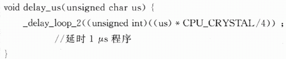 通過以上宏定義,可以實現SCK和DATA總線的各種輸入和輸出狀態。為了模擬該二線串行數字協議,還需要一個延時函數。WINAVR庫函數提供了一個延時函數_delay_loop_2(unslgned char s),該延時函數運行用4個時鐘周期,所以白定義延時1μs函數可以定義如下:#deftne CPU_CRYSTAL 7.3728