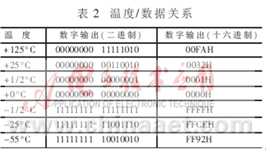 在實際應用中,測量溫度往往在0°C以上,此時可只取16位二進制溫度輸出的低8位,即1個字節,這樣將使計算和編程工作更為便利。