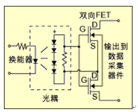雙向FET器件是以一種叫做雙向FET輸出的結(jié)構(gòu)實(shí)現(xiàn)的,如圖3所示。該結(jié)構(gòu)有許多優(yōu)點(diǎn),但最重要的是它能夠直接與TTL和 CMOS電路接口,而且它具有關(guān)態(tài)泄漏電流低和響應(yīng)速度快的特性。FET的意思是場(chǎng)效應(yīng)晶體管,它是一種最適合于用作數(shù)字傳感器輸出的器件,因?yàn)槠涔ぷ魈?性接近理想模型。