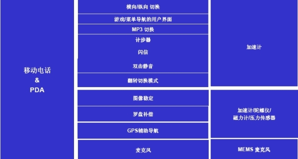 圖1:MEMS傳感器在移動電話和PDA中的應用