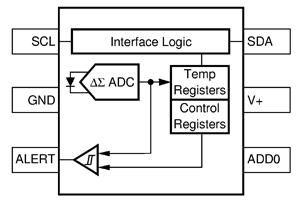大多數數字溫度傳感器都具有下列兩種接口中的一種:I2C或SPI。I2C接口是一種兩線總線,可用于與監控器件進行通信的多種系統。它通常以400kb/s的速度運行,但如果采用有源終端電路,則可以3.4Mb/s的速度運行。該總線要求單線具有上拉電阻,這使材料清單成本增加很小。