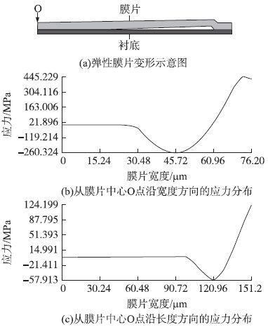對于采用濕法腐蝕的擴散硅壓力傳感器,其壓力敏感結構上的二氧化硅和氮化硅等絕緣或保護層厚度比彈性膜厚度小很多,一般在結構分析和應力分布分析中可以忽略它們的影響。但是,本文的犧牲層結構壓力傳感器的多晶硅彈性膜片厚度為3 μm、二氧化硅絕緣層厚度為0.5 μm,二氧化硅層厚度相對于多晶硅而言不可以忽略,所以在優化模擬仿真時需要考慮其對應力分布的影響。