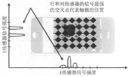 圖4 行和列傳感器的信號強度確定了觸摸的位置