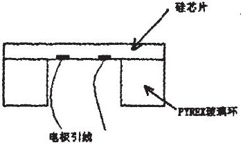 PYREX玻璃環作為硅芯片的力學固定支撐彈性敏感元件并且使硅芯片與封裝絕緣,而PYREX玻璃環的孔恰好成為了傳感器的參考壓力腔體和電極引線腔體。其結構如圖3所示。