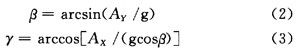 當(dāng)加速度計被定向,那么它的X和Y軸就和地球表面平行可用來作為具有翻滾和傾斜兩個軸的雙軸斜度傳感器,被測物體的俯仰角記為γ和橫滾角β。將磁阻傳感器的3個敏感軸沿載體的3個坐標(biāo)軸安裝,分別測量地磁場磁感應(yīng)強度H在載體坐標(biāo)系3個坐標(biāo)上的投影分量(HX,HY,HZ),然后利用俯仰角和橫滾角進(jìn)行姿態(tài)解算就可以得到電子羅盤的方位角。