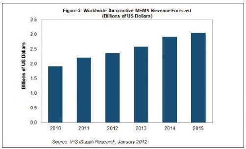 - 2011年汽車MEMS銷售額達到22億美元