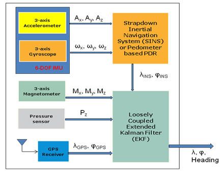 當天線沒有被遮擋時,現代的GPS接收器的絕對定位精度是3米到20米,這個參數不會在一段時期后發生漂移。基于MEMS傳感器的捷聯式慣性導航系統(SINS) 可在很短的時間內提供精確的定位信息,但是,根據運動傳感器的性能,這種導航系統在使用一段時間后很快就會發生精度漂移現象。行人航位推算系統(PDR)是一個根據步長和方位計算從室內已知初始位置開始的行走距離的相對導航系統,雖然定位精度不會隨時間推移而發生漂移,但是需要在受磁力干擾的環境內保持航向精度,此外,GPS需要對步長進行校準,才能達到可以接受的定位精度。