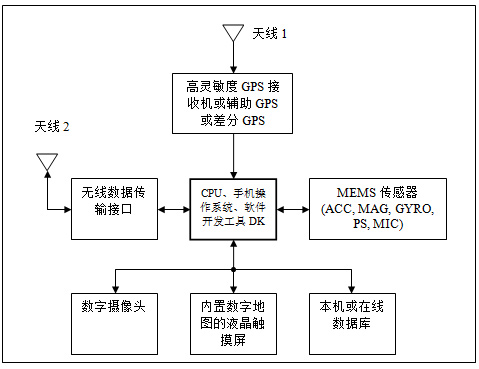 •無線數據傳輸接口,包括GSM/GPRS、WiFi、藍牙和RFID:無線數據接口的主要目的是接入互聯網,檢索當前位置目標的在線數據庫,在等待GPS定位或沒有GPS信號時提供簡要的定位信息。如果建筑物內預裝了發射器,其它的近距離無線連接如WLAN、藍牙和RFID也可以提供精度適當的室內定位信息。