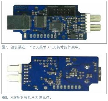 本設(shè)計(jì)裝在一個(gè)2.36英寸×1.38英寸的外殼中(圖7),PCB下方有幾只無(wú)源元件(圖8)。提供了詳情,能下載到整個(gè)設(shè)計(jì),以及CAD/CAM文件、物料清單和軟件。