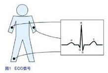 從電極收集回來的信號處于 在400μV到最高5mV的范圍內,并在0.05Hz 和100Hz 下帶有3dB轉角頻率。這類信號一般都會受到不少的干擾,例如電極的接觸噪聲、電源線路噪聲(50MHz)、呼吸、肌肉活動、以及來自其他電子器件的干擾。