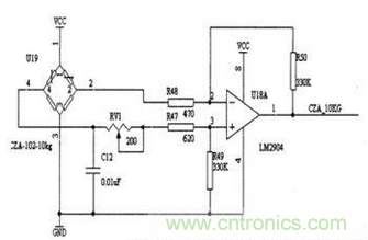 圖3:壓力傳感器電橋檢測(cè)電路