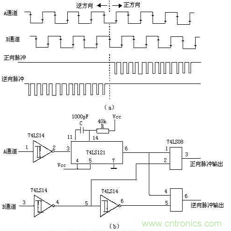 圖2:光電編碼器鑒相計數電路