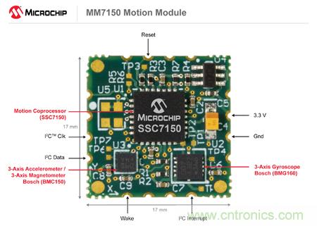 【導讀】近日,Microchip Technology Inc.宣布推出MM7150運動模塊,MM7150運動模塊整合了Microchip SSC7150運動協處理器和9軸傳感器,包含加速計、磁力計和陀螺儀,封裝小巧易于使用。