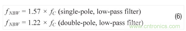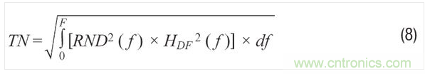 若系統(tǒng)需要定制濾波,其頻率響應(yīng) (HDF(f)) 不符合公式6和7中的簡(jiǎn)單單極點(diǎn)和雙極點(diǎn)模型,則可利用公式8提供的更一般關(guān)系來(lái)預(yù)測(cè)總噪聲: