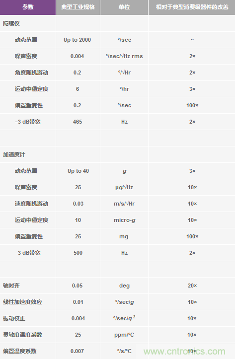 表6.工業MEMS器件對所有已知潛在誤差源進行全面測定,通常能實現消費類器件高出一個數量級或更高的精度水平