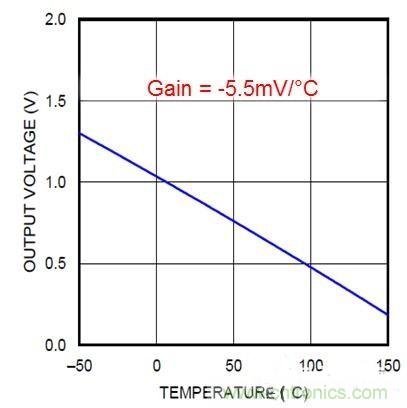 圖4:LMT84輸出電壓與溫度之間的關系圖