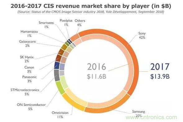 傳感器(CIS)已成為半導(dǎo)體產(chǎn)業(yè)的關(guān)鍵器件。這不僅是因?yàn)樗婕暗募夹g(shù)及其帶來的市場營收,而是因?yàn)楝F(xiàn)在已經(jīng)無法想象智能手機(jī)、汽車甚至是房屋如果沒有攝像頭的支持會(huì)怎樣。根據(jù)Yole最新發(fā)布的《CMOS圖像傳感器產(chǎn)業(yè)現(xiàn)狀-2018版》報(bào)告,2017年CIS產(chǎn)業(yè)的市場規(guī)模達(dá)到了139億美元,預(yù)計(jì)未來5年的復(fù)合年增長率(CAGR)將達(dá)到9.4%。
