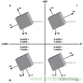 圖2:不同象限與加速度輸出值正負的關(guān)系
