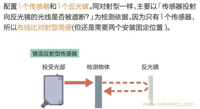 鏡反射型光電傳感器:在這里也相當于通過反光鏡的反射光而不是被測物的發射光,所以也是可以有效解決這些問題的。