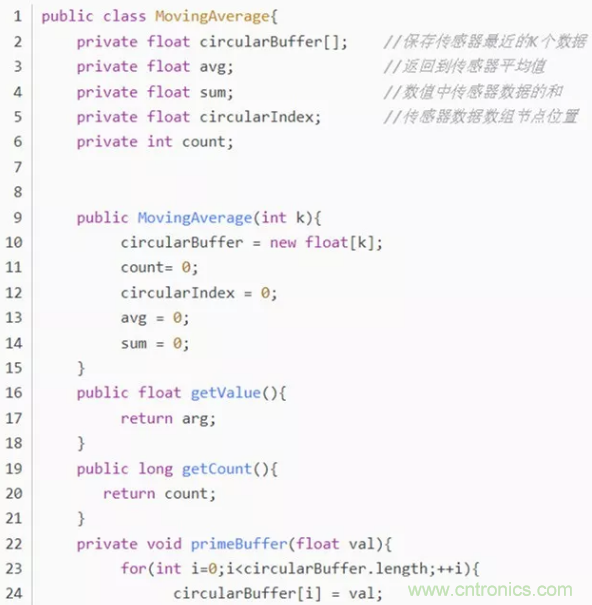 保留傳感器數據流中最近的K個數據,返回它們的平均值。其中,K表示平均“窗口”的大小;