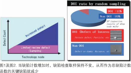 半導(dǎo)體制造中廣泛采用晶圓自動(dòng)檢測(cè)系統(tǒng)已逾30年。在線晶圓檢測(cè)有助于推進(jìn)制造技術(shù)的發(fā)展,它能早期檢測(cè)到工藝中的缺陷,從而減少開(kāi)發(fā)時(shí)間并防止產(chǎn)出超時(shí)。過(guò)去,檢測(cè)缺陷的能力是主要關(guān)注點(diǎn)之一,但現(xiàn)在的要求改變了。近幾年來(lái),每一晶圓的缺陷計(jì)數(shù)迅速增長(zhǎng)至每一晶圓多達(dá)100萬(wàn)個(gè)缺陷,這是因?yàn)榫A尺寸變大,同時(shí)檢測(cè)技術(shù)靈敏度更高了(圖1)。雖然總檢測(cè)計(jì)數(shù)增加及關(guān)鍵缺陷尺寸變得更小,這一時(shí)期缺陷檢查的典型策略并未改變,尤其是在隨機(jī)取樣占主導(dǎo)的缺陷檢查區(qū)域。這種情況能產(chǎn)生常與干擾缺陷在一起的缺陷pareto圖(圖2)。