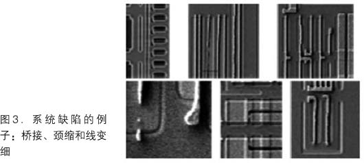 傳統(tǒng)的在線監(jiān)控策略主要關(guān)注像隨機(jī)微粒這樣的隨機(jī)缺陷。盡管檢測(cè)隨機(jī)微粒很重要,但更先進(jìn)的技術(shù)節(jié)點(diǎn)出現(xiàn)了很難檢測(cè)的系統(tǒng)缺陷(圖3)。即使檢測(cè)后,從大量缺陷計(jì)數(shù)中識(shí)別這些缺陷也頗具挑戰(zhàn)性,每晶圓50個(gè)缺陷的取樣率僅是105個(gè)缺陷數(shù)據(jù)的0.05%。隨著系統(tǒng)缺陷的增加,人們更多關(guān)注識(shí)別工藝開(kāi)發(fā)早期的作圖問(wèn)題以減少產(chǎn)品推出周期。
