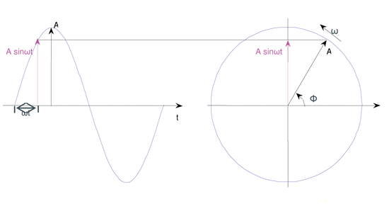 圖1 時域表述的正弦波與矢量信號的對應關系
